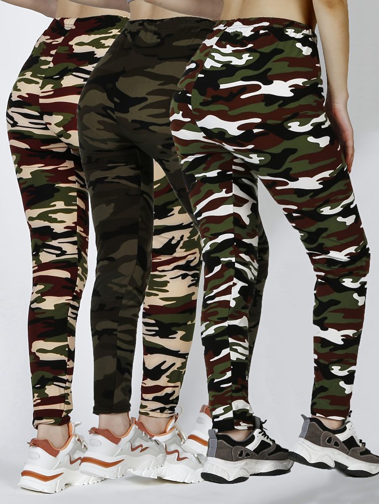 3-Pack European and American Fashion S Casual Leggings Camouflage Printed Tights Workout Leggings Women’s Swear Ankle Pants