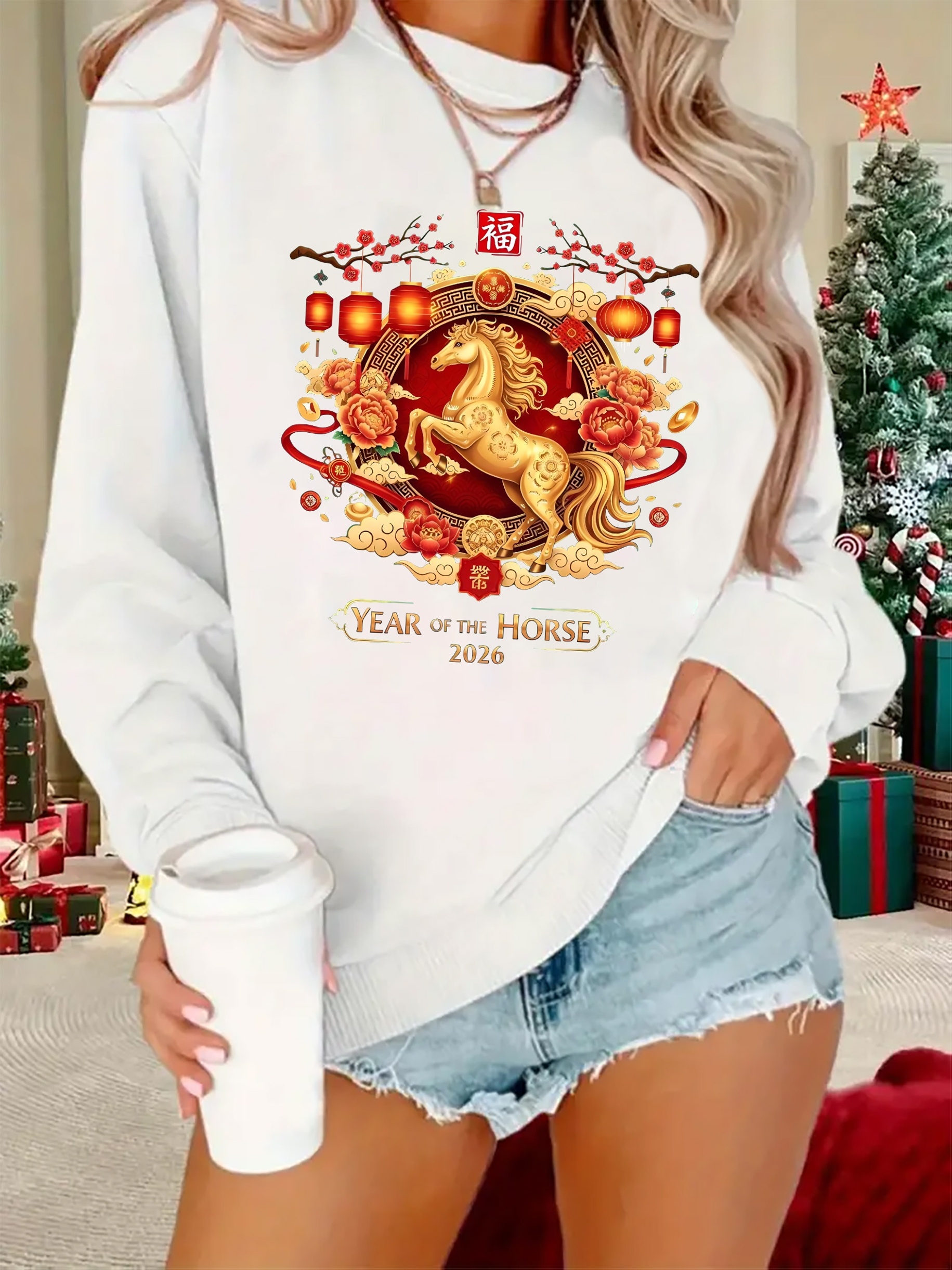 Be the first to review “2026 Year of the Horse printed Women’s casual loose round neck autumn and winter hoodie, made of soft and comfortable material, machine washable” Cancel reply