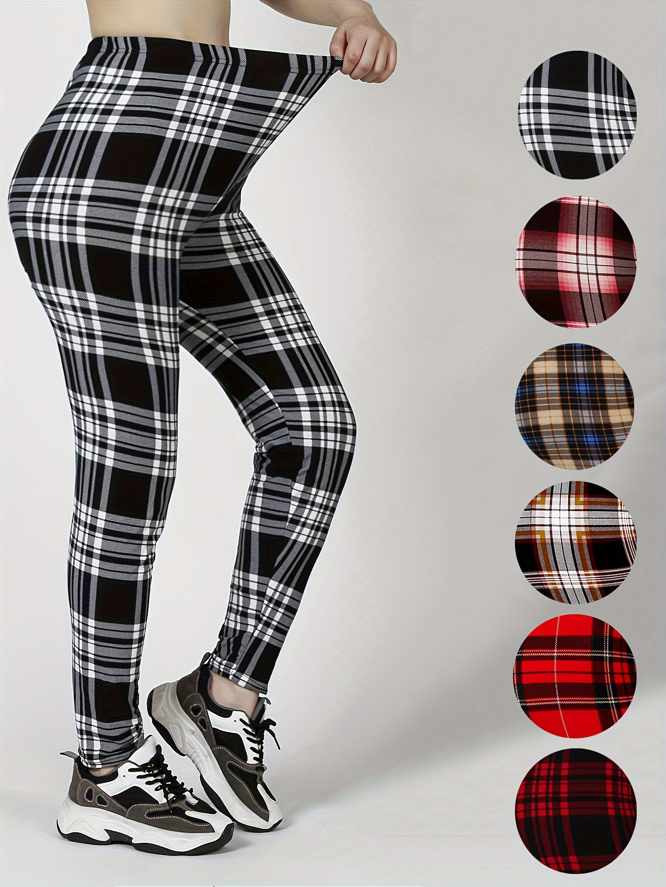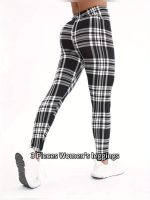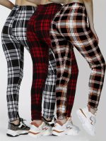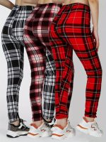 Home Women's Skinny-Fit Pants 3 Packs Women’S Soft & Stretchy Tight Leggings – Black, White, and Red Plaid Patterns, High Waist, Elastic Waistband, Crop Length, Perfect for Fitness, and Casual Weekend Wear, Casual Wear Leggings|Plaid Pattern Leggings|Stretchy Material