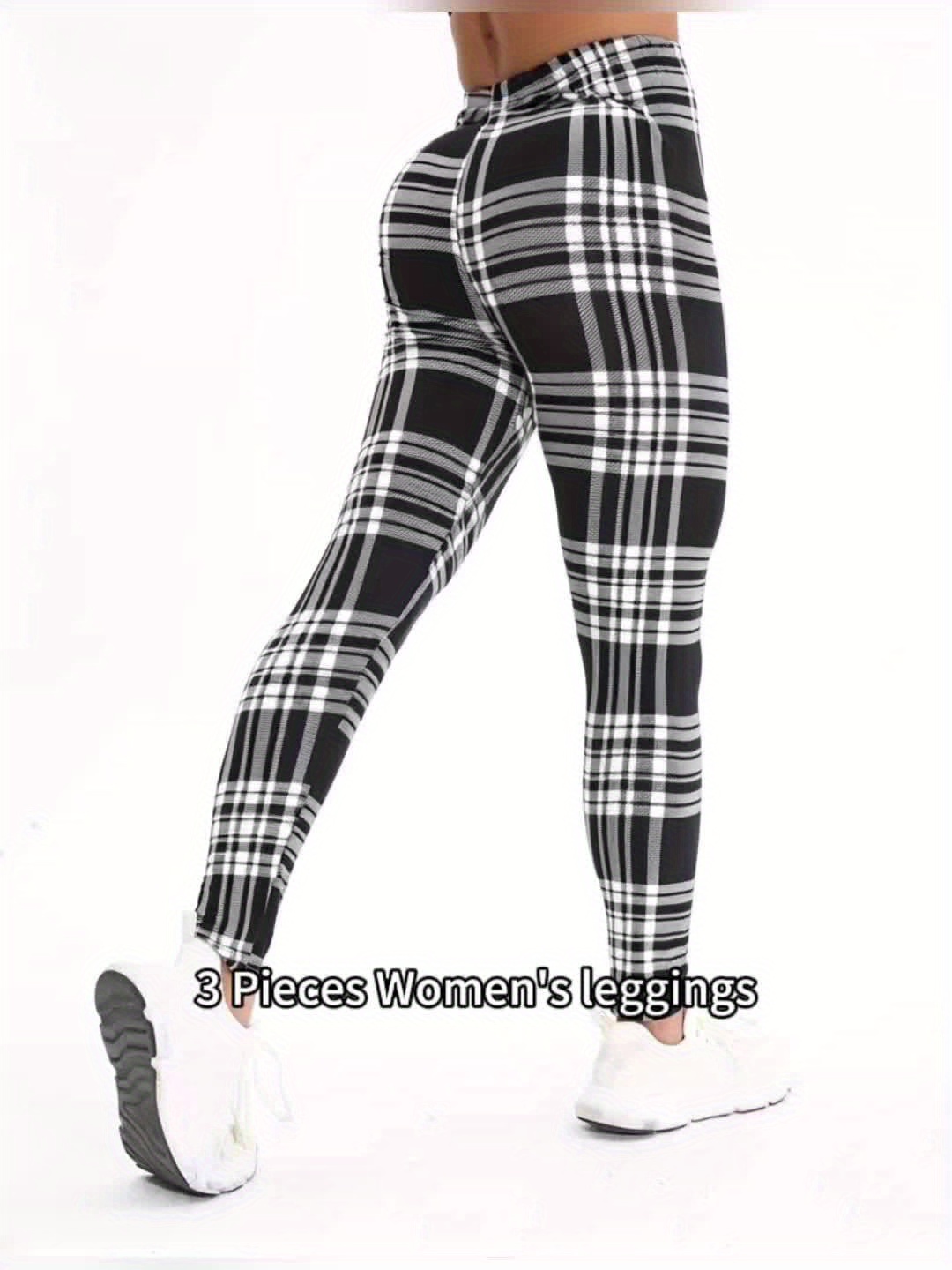 3 Packs Women’S Soft & Stretchy Tight Leggings – Black, White, and Red Plaid Patterns, High Waist, Elastic Waistband, Crop Length, Perfect for Fitness, and Casual Weekend Wear, Casual Wear Leggings|Plaid Pattern Leggings|Stretchy Material