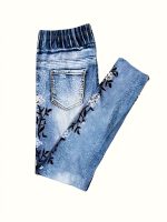 Printed Pants – Not Denim Fabric Women’s High-Stretch Imitation Denim Print Leggings, Casual All-Season Fabric Printed Elastic Waistband Tights