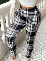 Printed Leggings – Not Denim FabricLadies’ Black High-Waisted Skinny Pants with Pockets Made from Stretchy Fabric, Not Denim