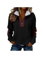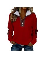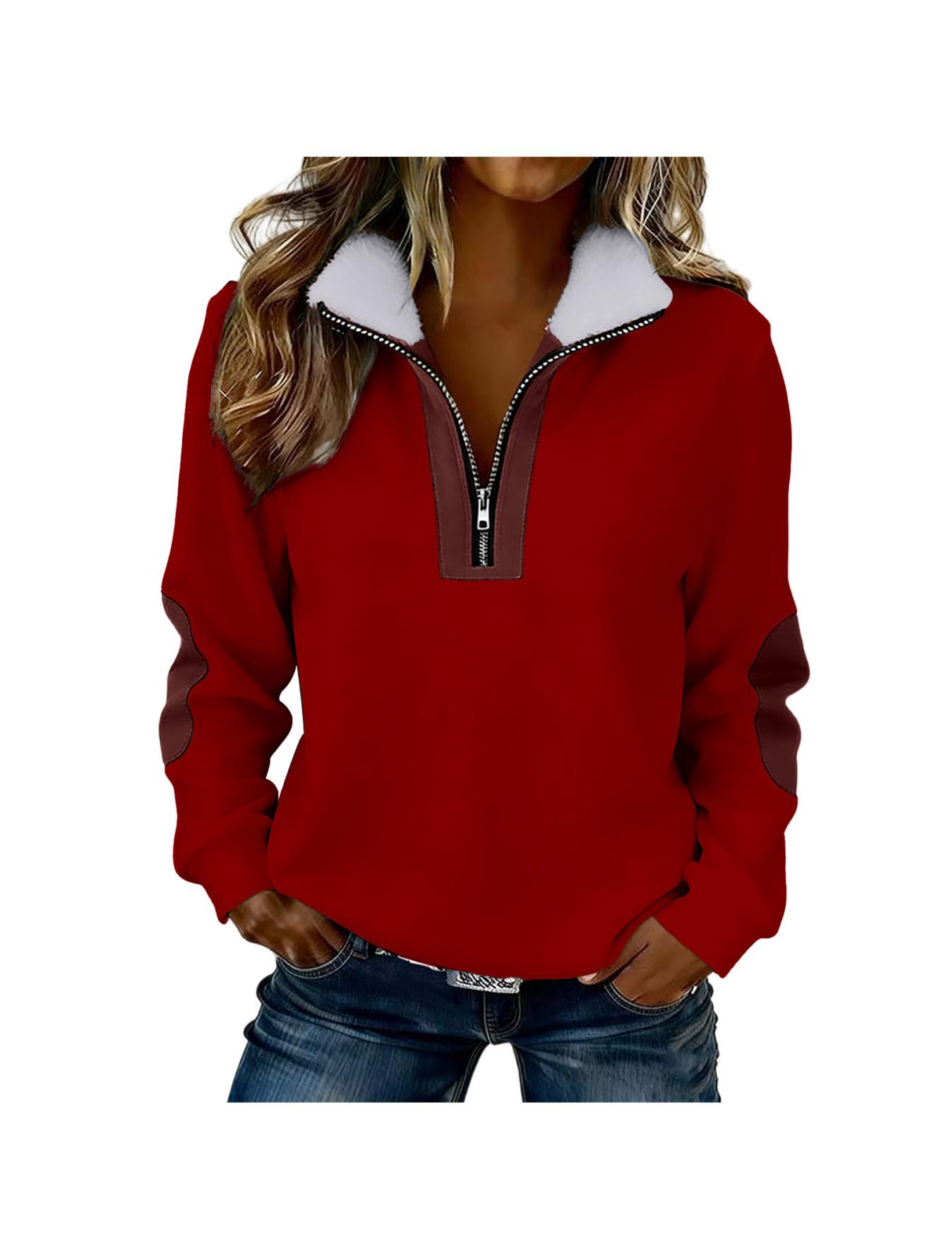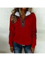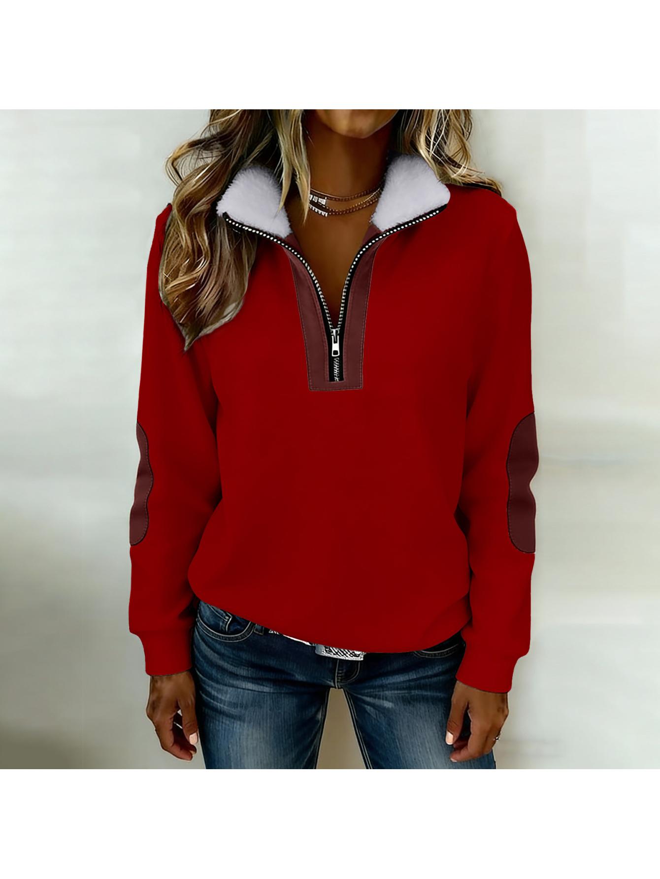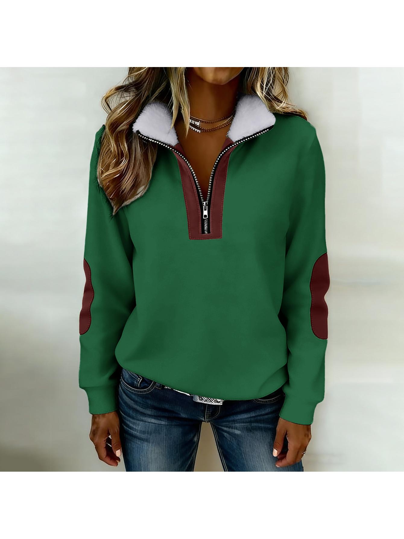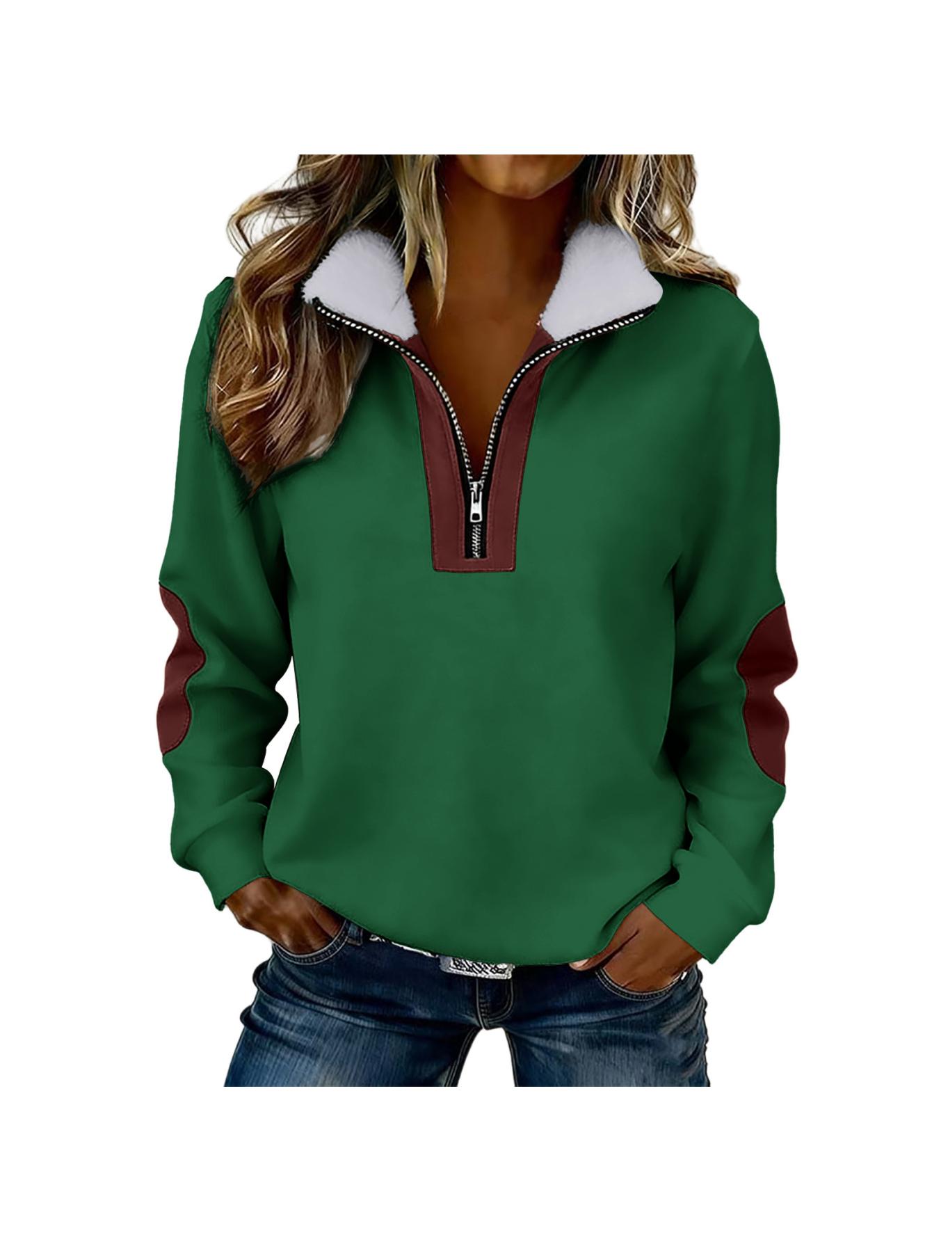 Home Women's Sweatshirts Women’S Color Blocked Half-Zip Long-Sleeve Fuzzy Collared Casual Sweatshirt Jacket | Spring & Autumn Warm Clothing, Non-Stretch Fabric, Solid Color, Zipper Detail