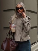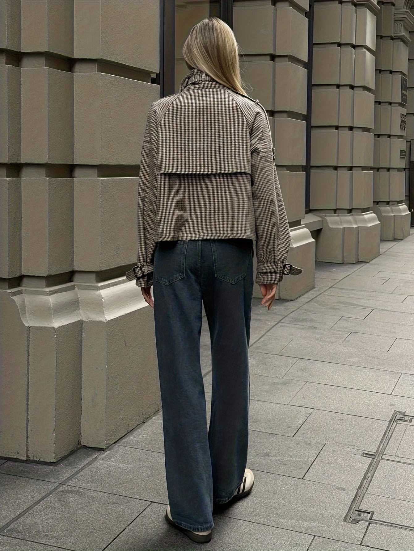 Be the first to review “Women’S Loose Casual Houndstooth Pattern Coat | Funnel Collar, Regular Length, Button Details” Cancel reply