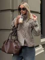Women’s Button- Fashion Jacket, PU Leather Blazer with Lapel, Casual Style Top, Slim Fit Coat, New Women’s Clothing