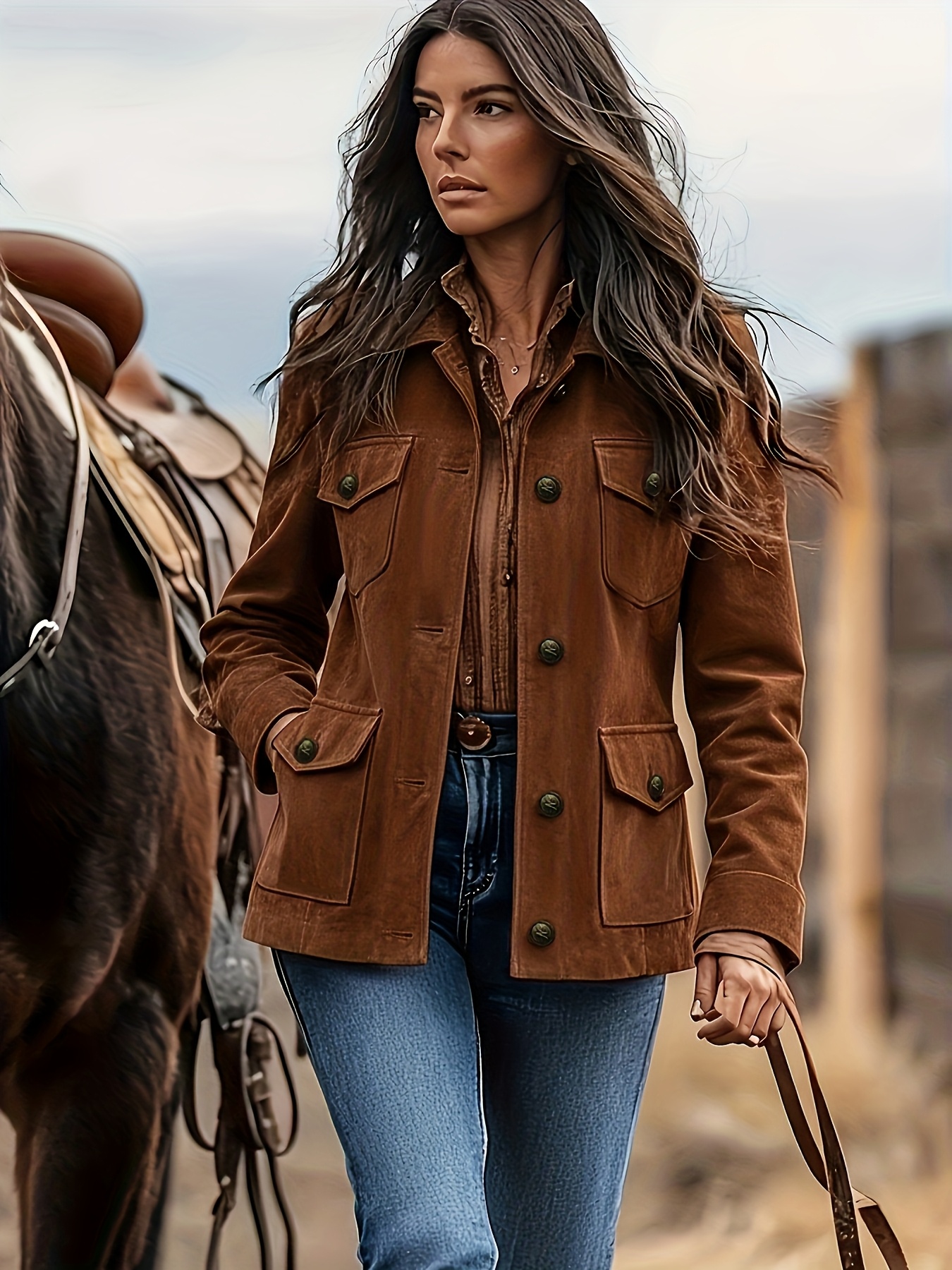 Women’s New Vintage Western Style Jacket, Classic Lapel, Multiple Pockets, Outdoor Wear, Everyday Jacket, Vintage Design