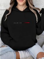 Home Women's Sweatshirts Women’s Paris Letter Print Long Sleeve Hooded Sweatshirt – Sporty Casual Style, Autumnu002FWinter, 100% Polyester 230g Soft Breathable Fabric, Simple Fashion Comfort Classic Versatile