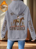 Home Women's Coats & Jackets Women’s Western Cowgirl Print Thick Jacket, Cowhide-Like Texture-like Pattern, Zippered Pockets & Cowgirl Motifs, Warm Outerwear for Fall & Winter, Machine Washable Winter Coat (Polyester)