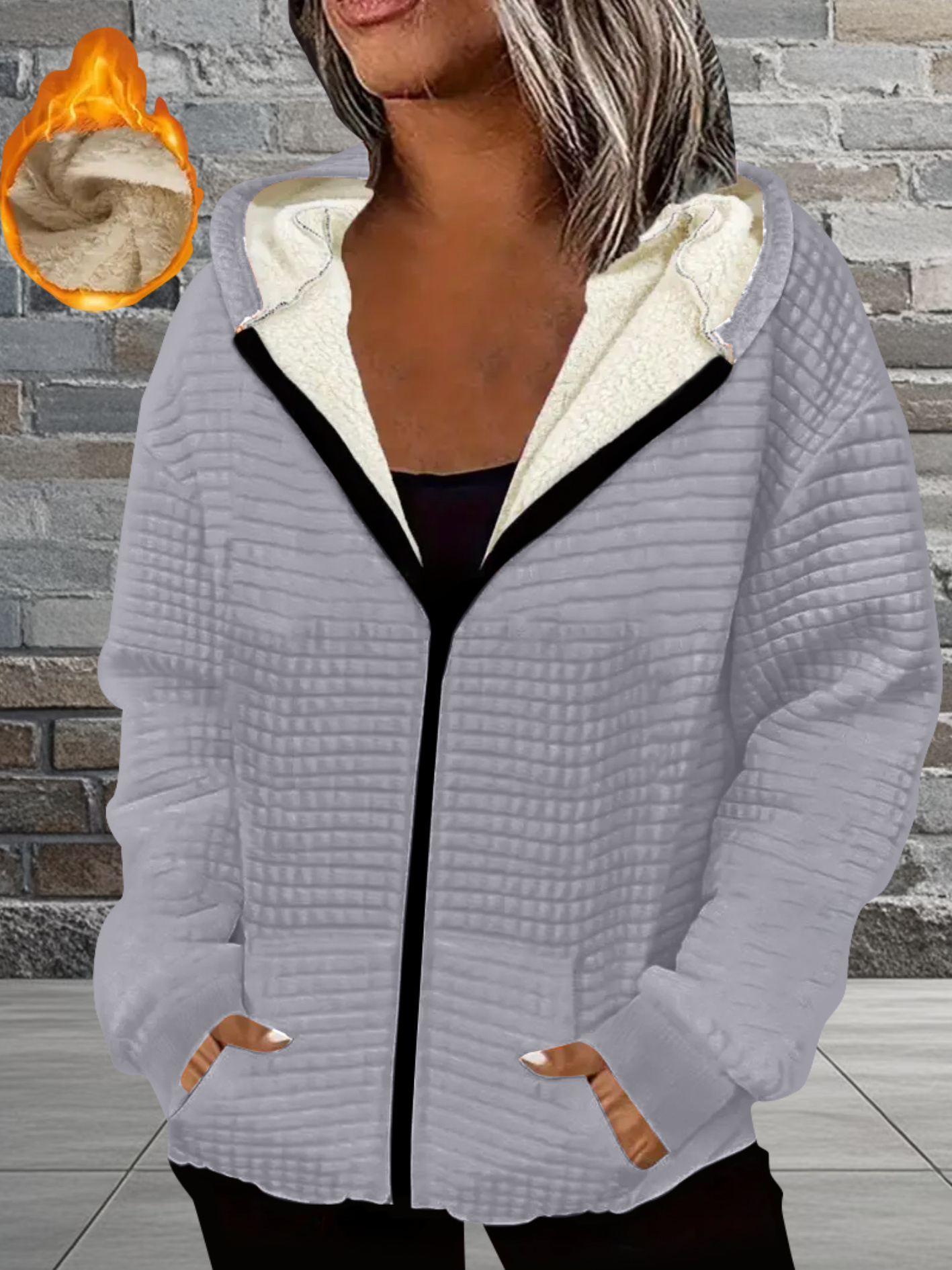 802# Women’s Autumnu002FWinter Zip-Up Jacket, American Streetwear Printed Style with -Lined Thickened Casual Coat Featuring Pockets and Unique Design A15