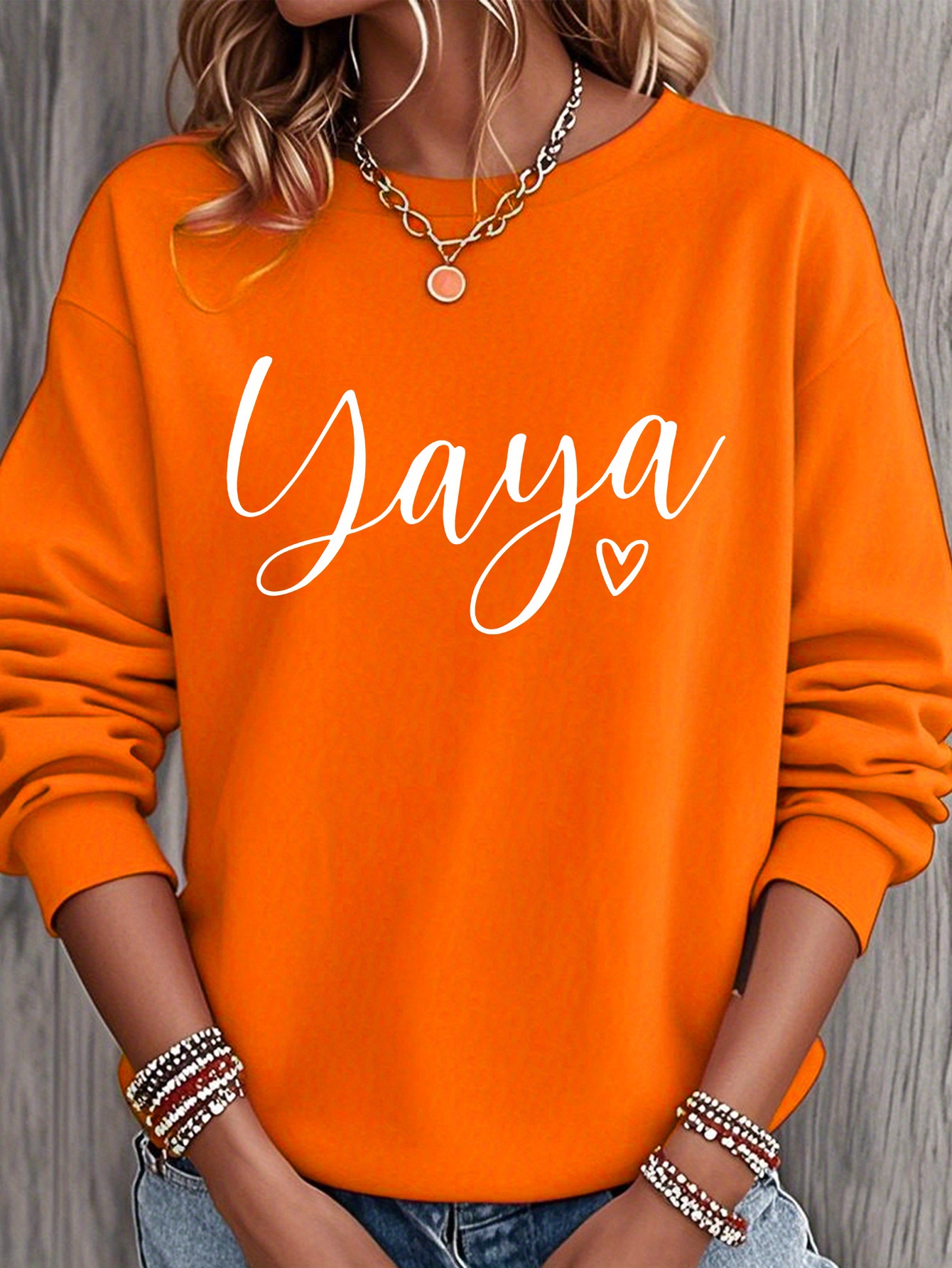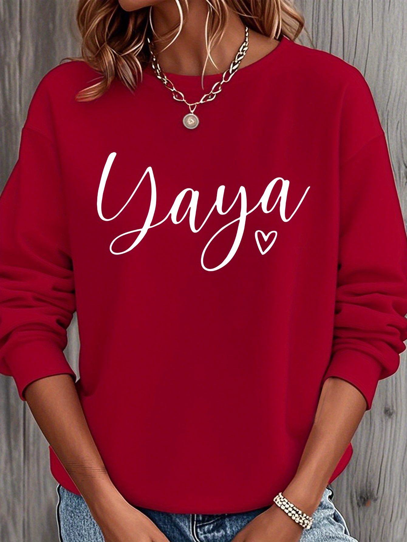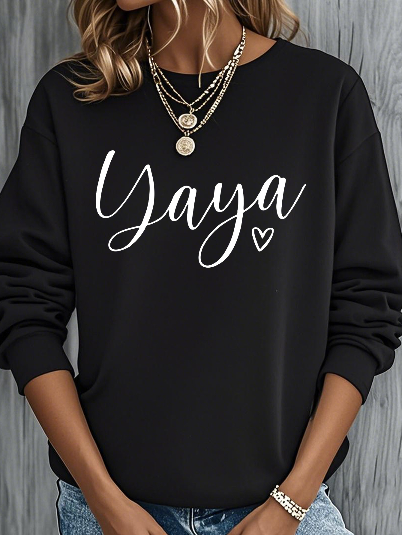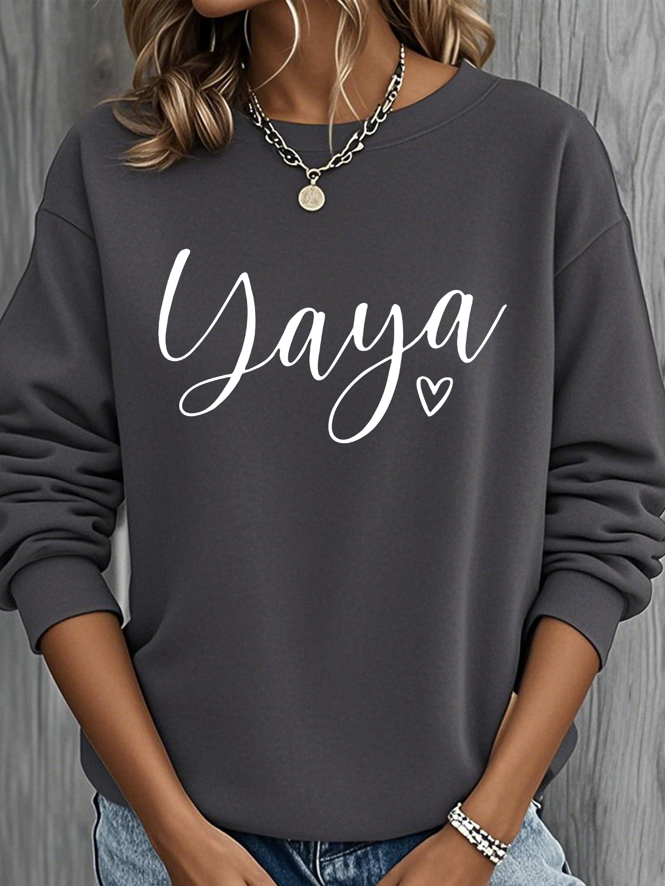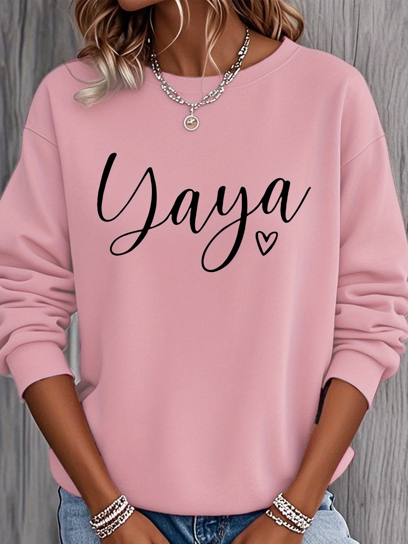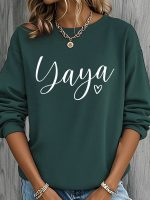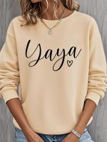 Home Women's Sweatshirts Yaya Heart Nickname Printed Women’s Round Neck Casual Sweatshirt, Heavyweight 250 Grams Fabric, Essential for Spring, Summer, Autumn and Winter