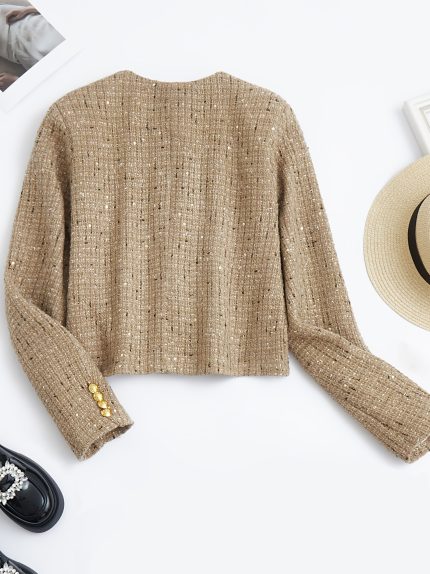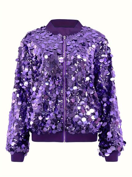Women’S Sparkling Purple Sequin Jacket – Winter Party & Everyday Outerwear Coat with Shimmering Effect, Round Neck Non-Bulky Design for Formal Events, Night Out, Office – Fallu002FWinter Jacket (A10545A), Ladies Winter Coats, Evening Wear, Sleek Fabric, Stylish Coat, Fashion Lovers, Cold Weather Wear, Durable Construction, Fashionforward Women, Fall Fashion, Highquality Stitching, Fashionconscious Women